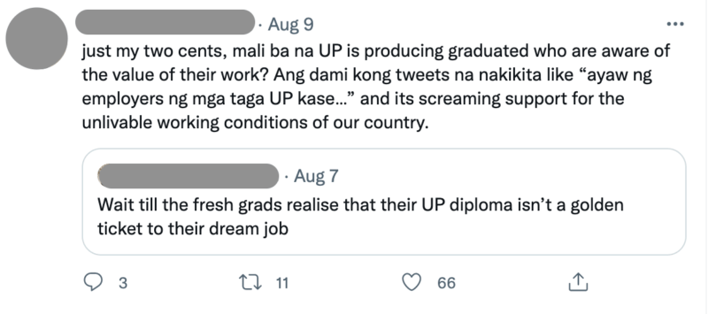 Other netizens also acknowledged that it’s not only UP students who deserve good treatment from companies. It’s every graduate, regardless of their university.