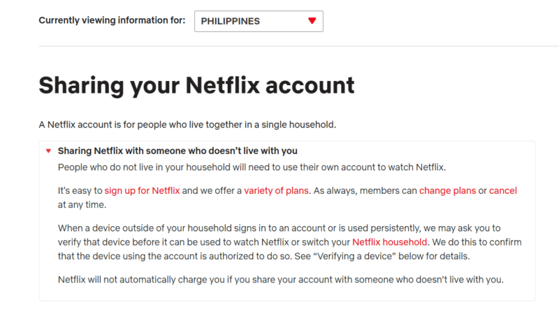 Netflix has yet to give a specific list of countries that will be affected by these changes. However, the user guidelines for the Philippines already look like it’s gearing up for the inevitable.