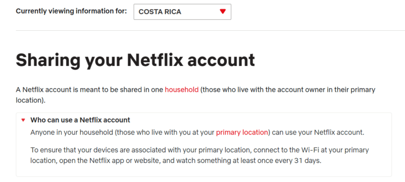 Netflix has already issued its new guidelines (A.K.A. anti-password-sharing) for countries like Costa Rica, Chile, and Peru. (It had the same guidelines for the US for a while but reverted it back to the original).